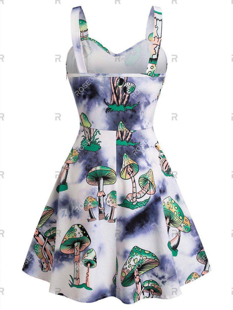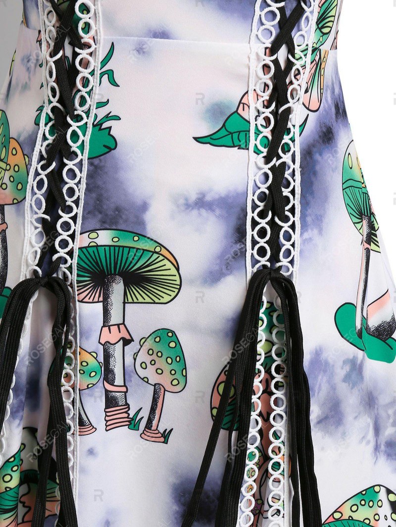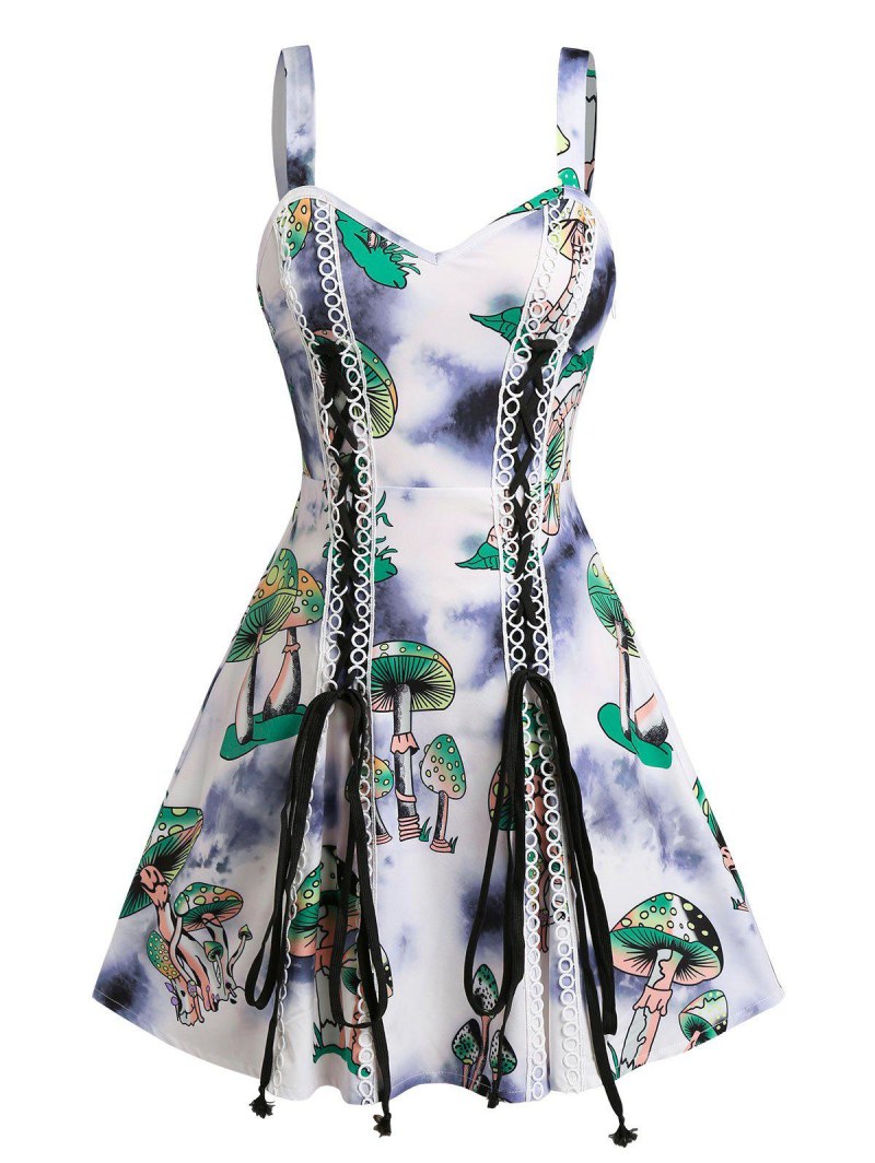 Sleeveless Mushroom Tie Dye Print Lace-up Dress