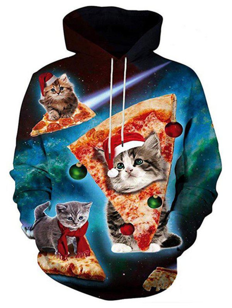 Christmas Star Cat 3d Digital Print Sweater Men's Hooded Pullover