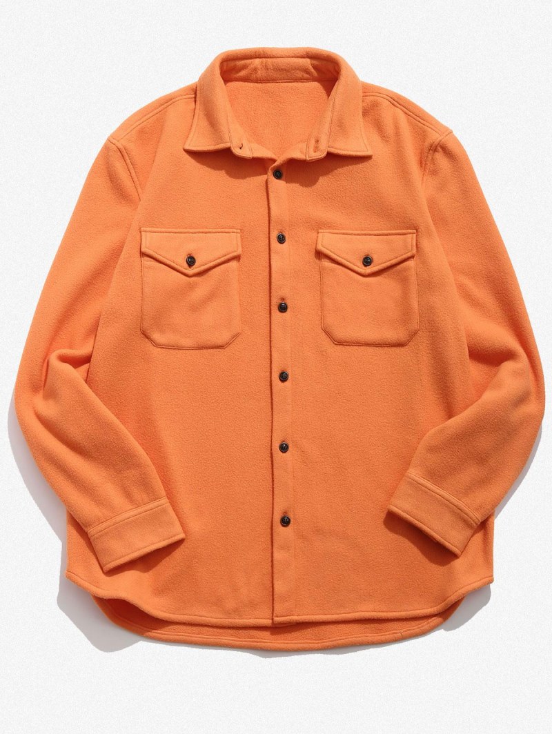 Double Pockets Button Up Fleece Shirt