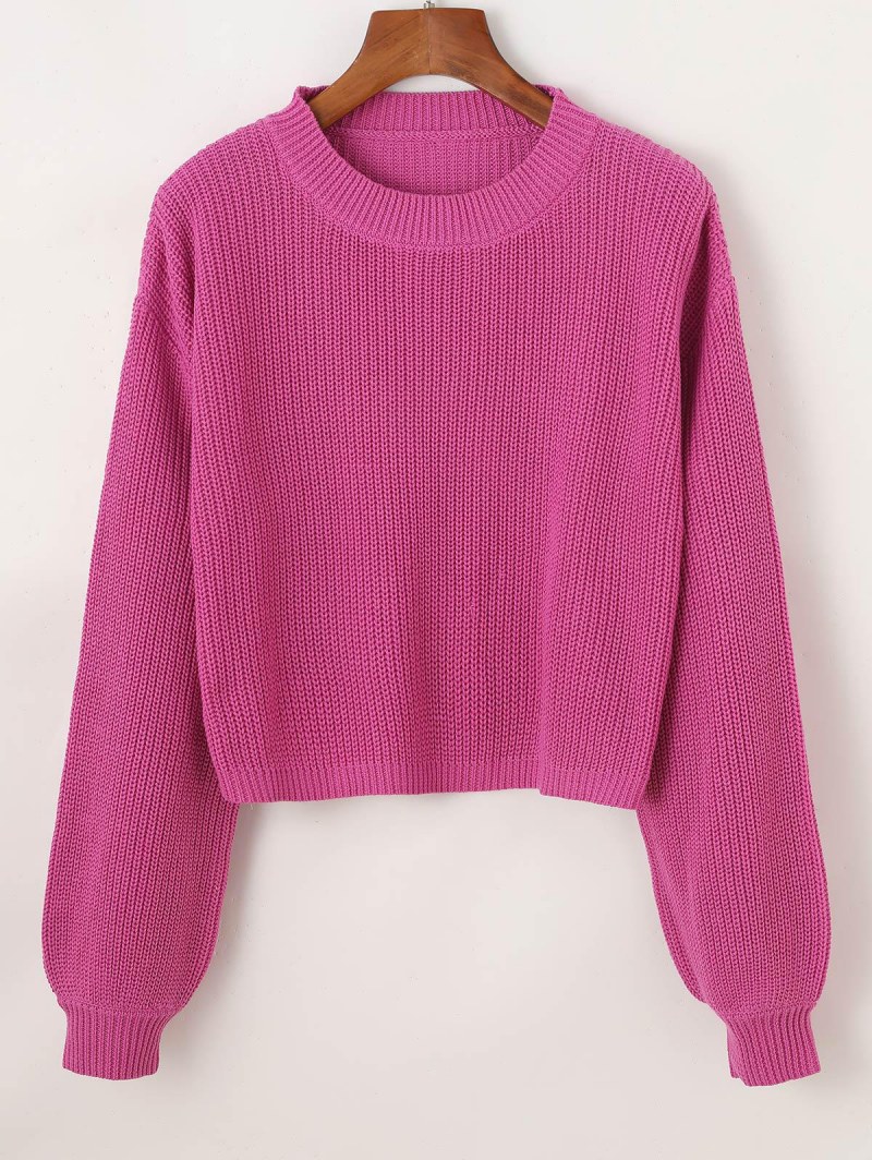 Drop Shoulder Crew Neck Lantern Sleeve Sweater