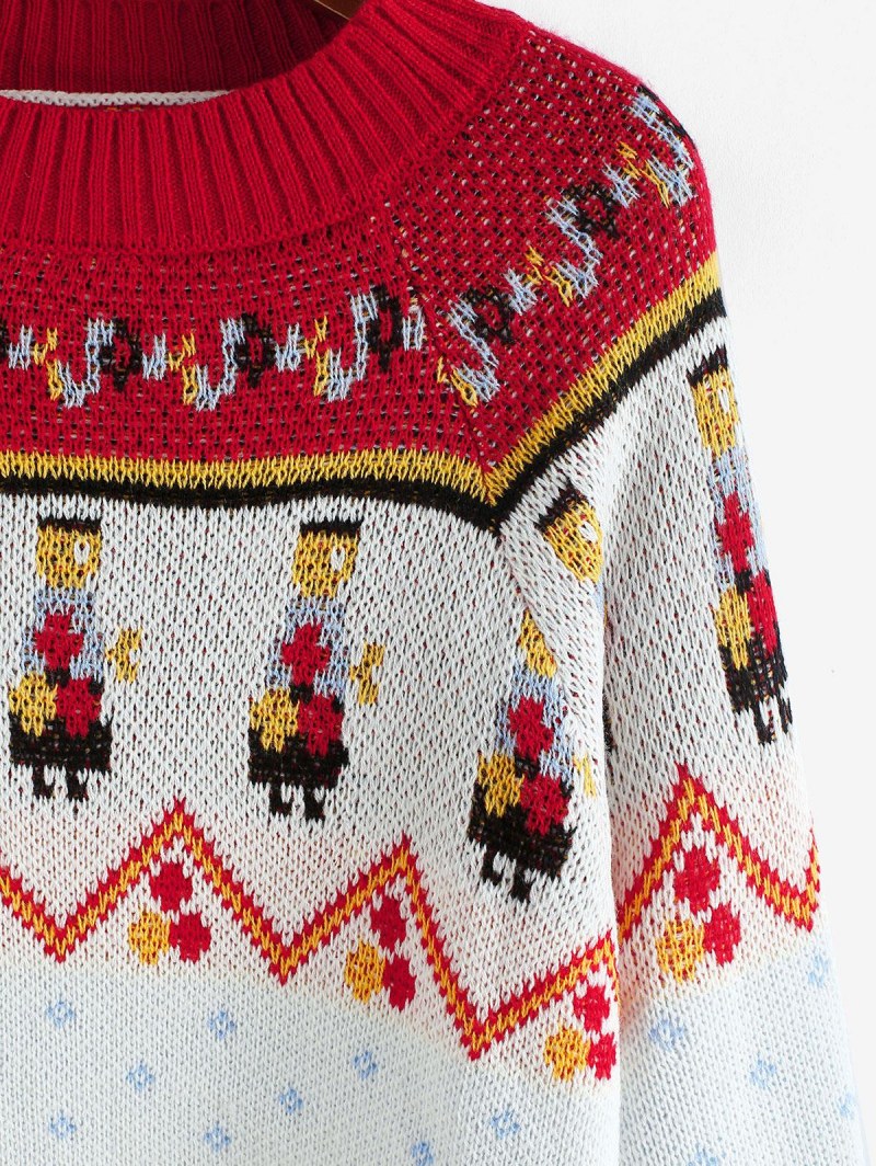 Mock Neck Christmas Graphic Raglan Sleeve Sweater