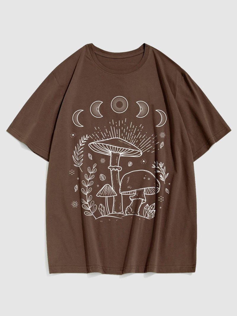 Galaxy Mushroom Printed Graphic Crew Neck T-shirt