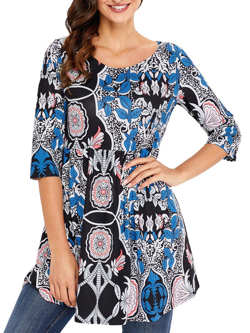 Elastic Waist Print Tunic Blouse