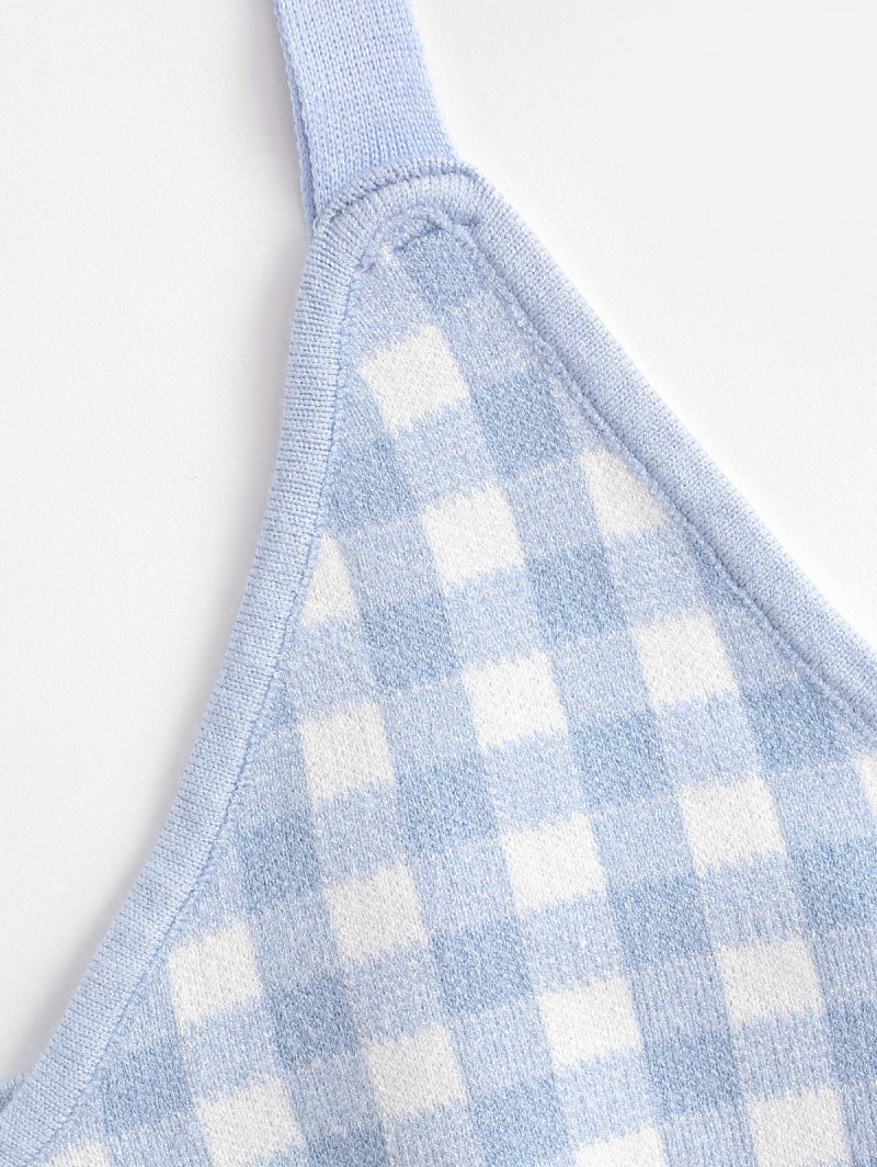 Checked Knitted Crop Tank Top
