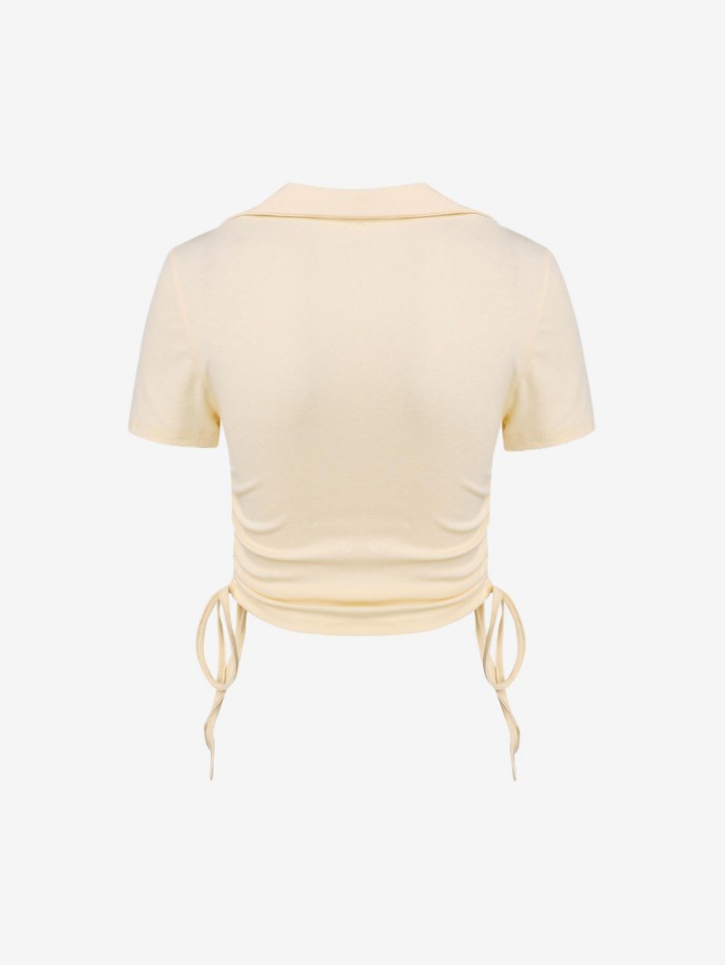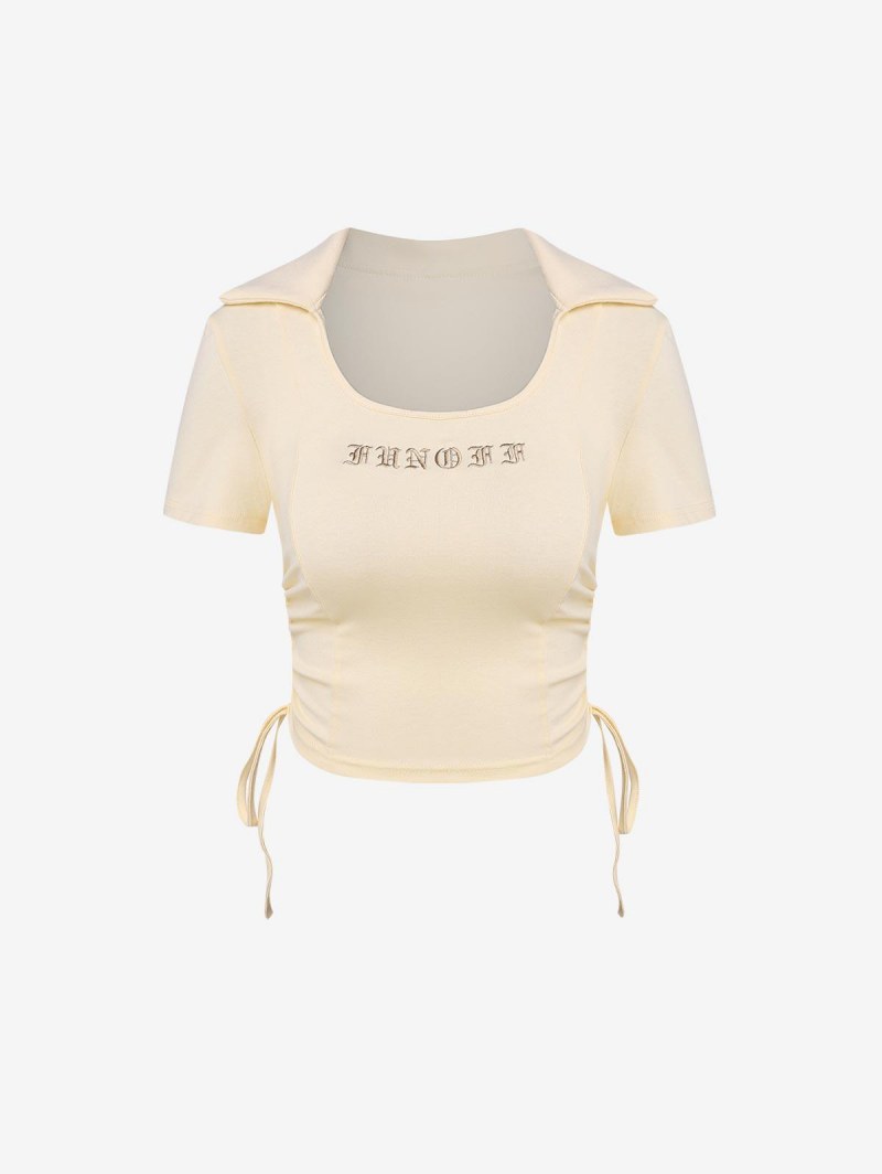 Letter Embroidered Cinched Crop T Shirt