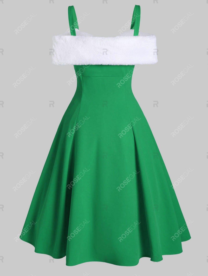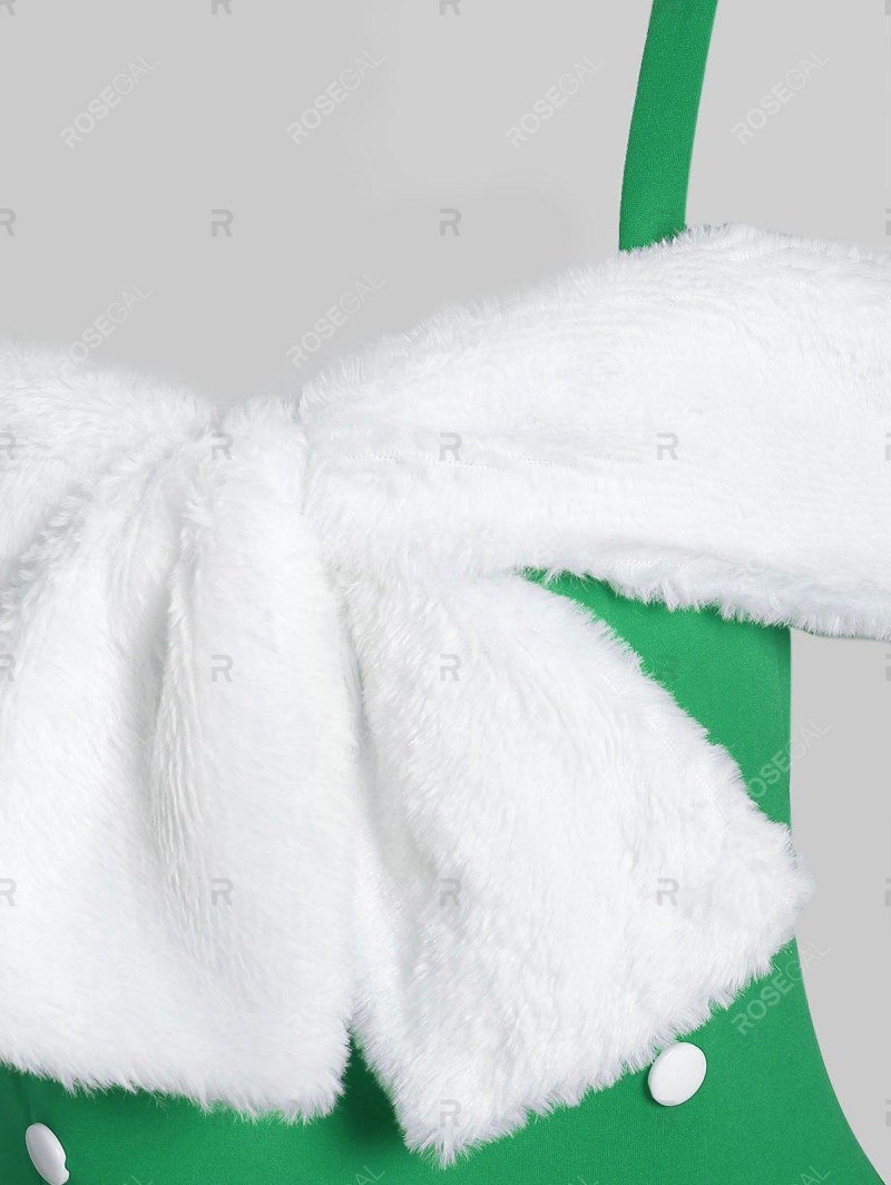 Faux Fur Panel Bowknot Open Shoulder Party Dress