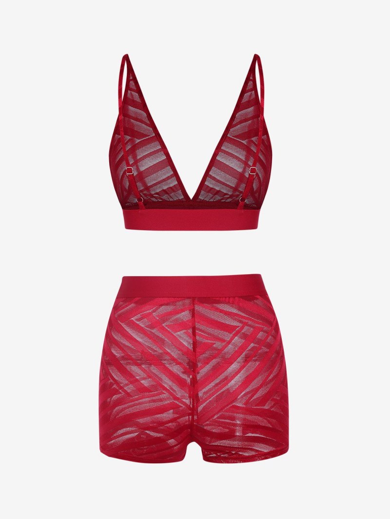 Mesh Shadow Stripes Bralette Top And Shorts Set